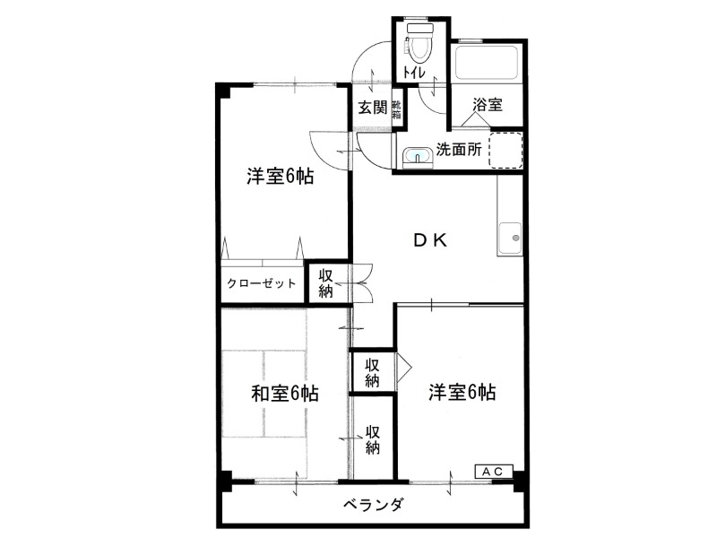 | 間取り詳細 | 和室 6畳 、 洋室 6畳 、 洋室 6畳 、 DK 7畳 |