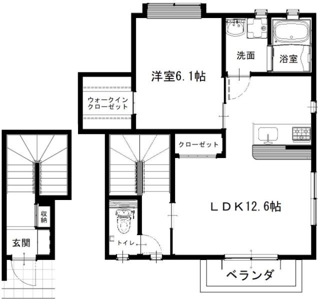 | 間取り詳細 | 洋室 6.1畳 、 LDK 12.6畳 |
