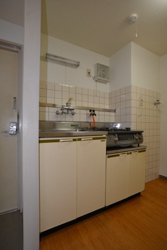 | 設備 | ガス(プロパン)、管理形態(巡回)、火災報知機、専用ゴミ置き場(あり)、駐輪場、日当り良好、眺望良好、通風良好、クッションフロア、照明器具、全室照明付、カーテン付、ベランダ・バルコニー、クローゼット、クローゼット数(1)、下駄箱、バス・トイレ別(同室)、シャワー、給湯、温水洗浄便座、洗面台、洗濯機置き場(室内)、コンロ設置済、コンロ口数(2)、コンロ種類(プロパン)、エアコン、エアコン台数(1) | ||